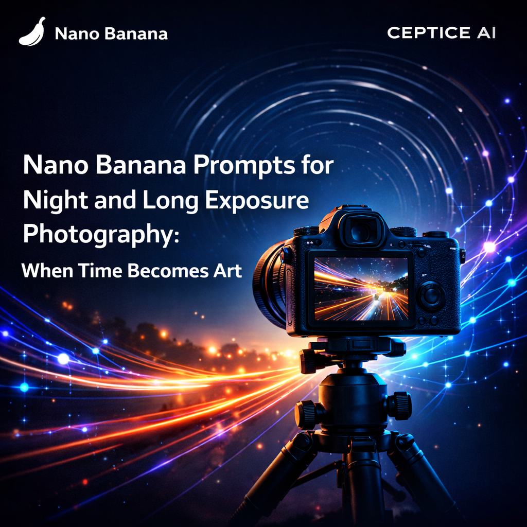 Night photography and long exposure photography is where the camera becomes a time machine — compressing minutes of reality into a single frame, making the invisible visible, turning the mundane into something extraordinary. Light trails from traffic become rivers of light. Waterfalls become silken curtains of white. Cityscapes become jeweled carpets stretching to the horizon. When you’re generating night and long exposure photography with Nano Banana Prompts, the technical parameters of time become your most powerful creative tool. Generic prompts produce ordinary night photos. Precision-engineered Nano Banana Prompts produce images where time itself is the subject.